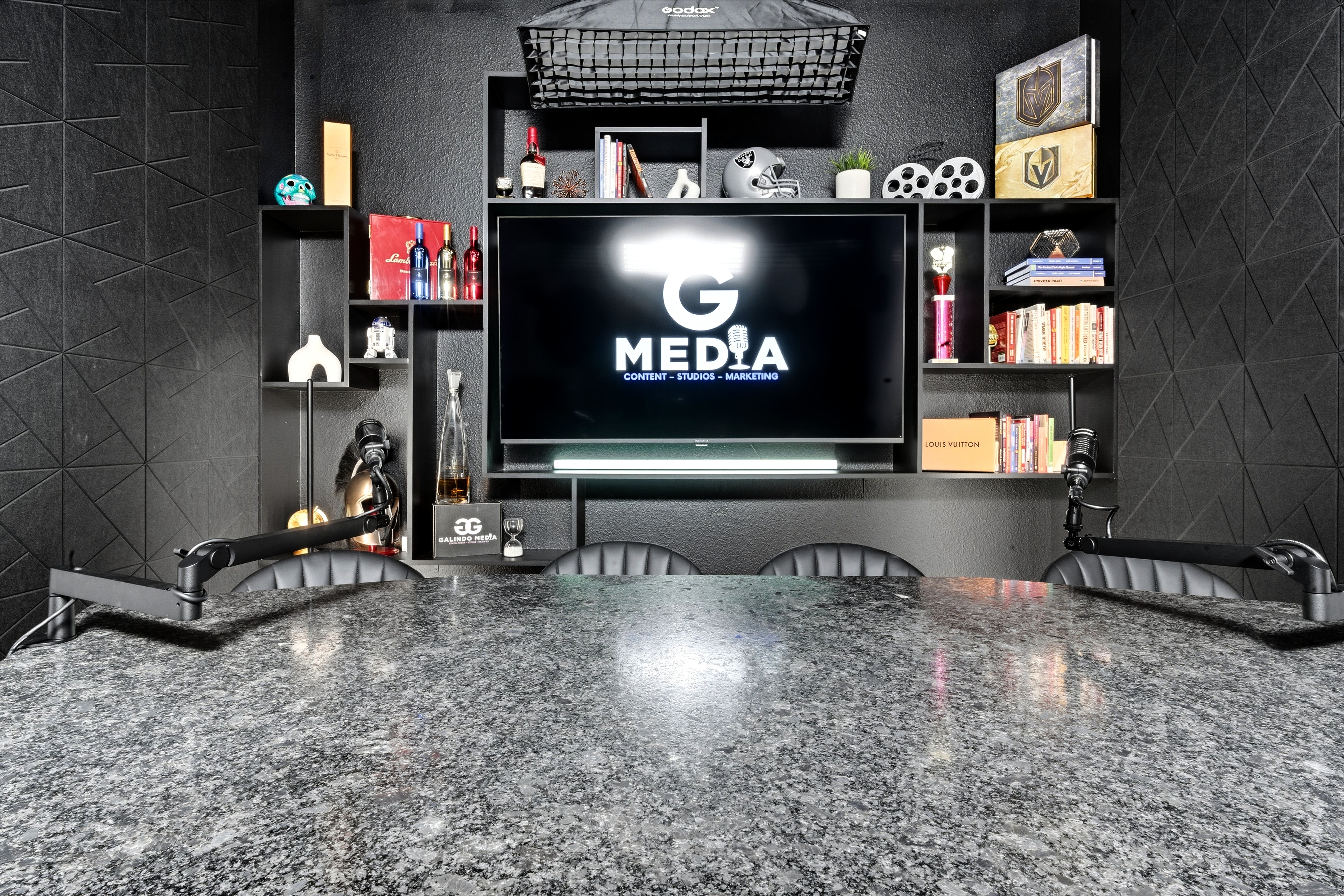 A clean, interview-first setup built for podcasts, sit-down conversations, and talking-head content.